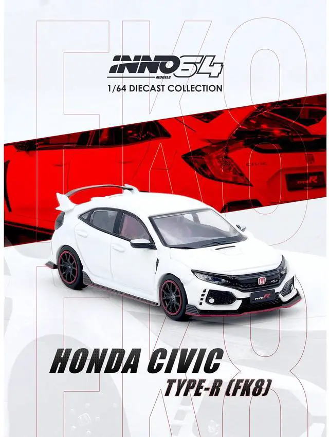 Brand new 1/64 scale diecast car model of Honda Civic Type R (FK8) RHD (Right Hand Drive) White die cast model car by Inno Models.