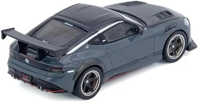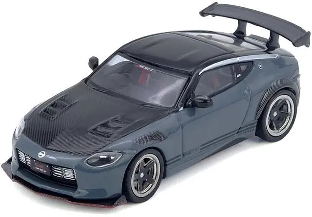 Brand new 1/64 scale diecast car model of Nissan Fairlady Z "Top Secret" (RZ34) RHD (Right Hand Drive) Stealth Gray with Carbon Hood and Black Top die cast model car by Inno Models.