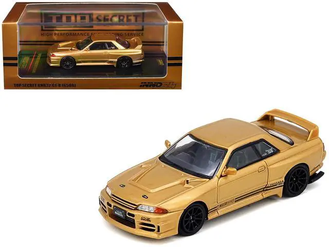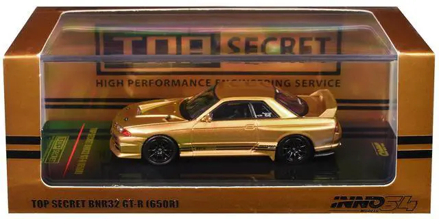 Brand new 1/64 scale diecast car model of Nissan Skyline "Top Secret" BNR32 GT-R (650R) RHD (Right Hand Drive) Gold Metallic die cast model car by Inno Models.