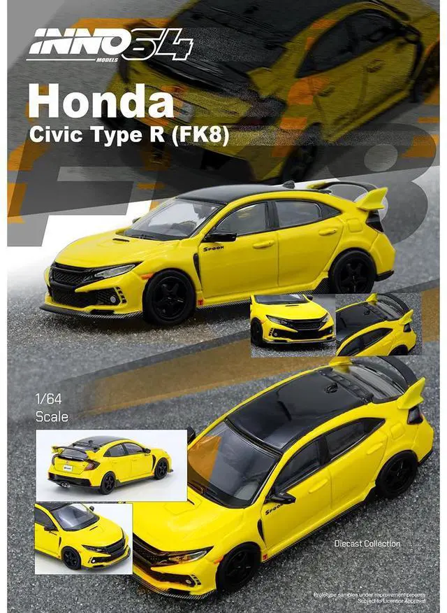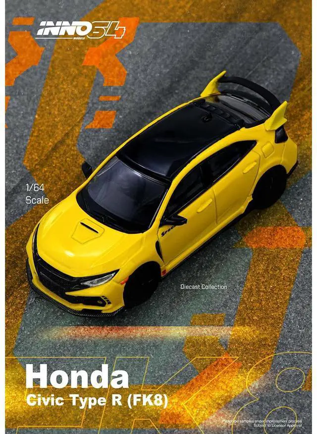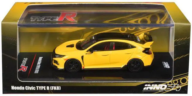 Brand new 1/64 scale diecast car model of Honda Civic Type R (FK8) RHD (Right Hand Drive) Yellow with Black Top die cast model car by Inno Models.