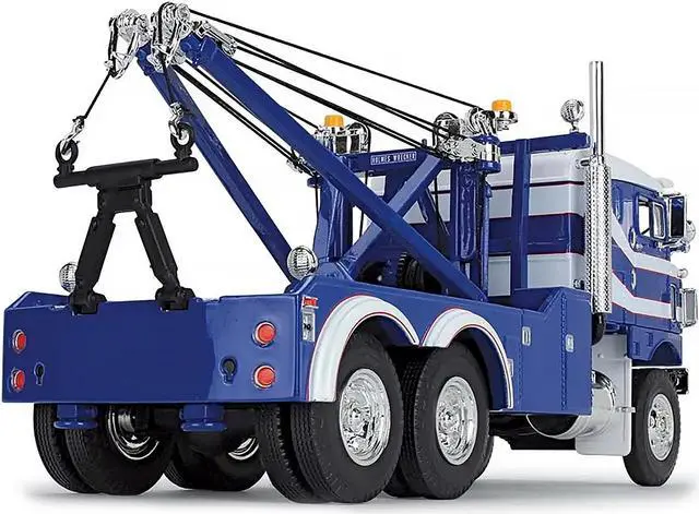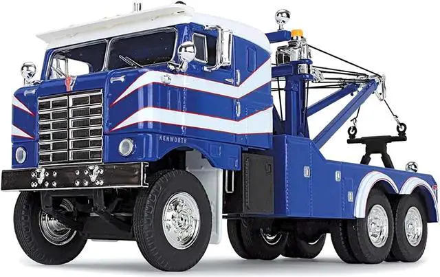Brand new 1/34 scale diecast model of 1953 Kenworth Bullnose Heavy-Duty Holmes Wrecker Tow Truck Rich Blue and White die cast model by First Gear.