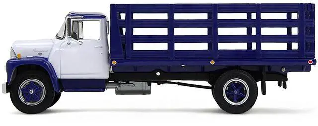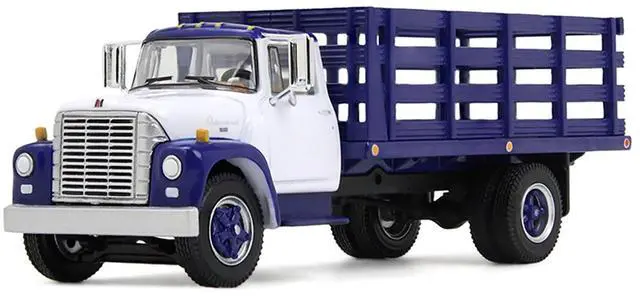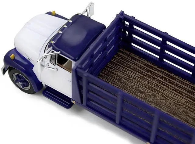 Brand new 1/64 scale diecast model of 1970s International Loadstar Stake Truck White and Navy Blue die cast model by DCP/First Gear.