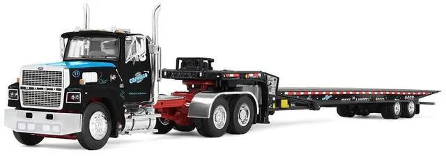 Brand new 1/64 scale diecast model of Ford LTL 9000 Day Cab and Landoll 440B-50CA Traveling Axle Trailer "Cappello Heavy Transport" Black with Blue Hood "Legacy" Series #3 die cast model by DCP/First Gear.