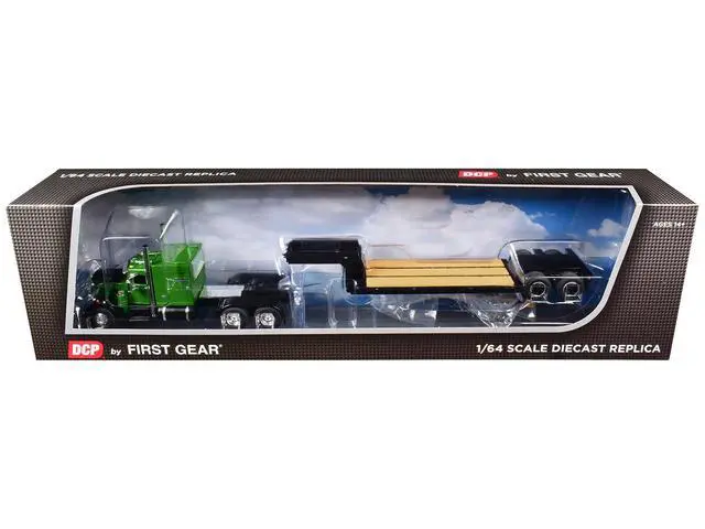 Brand new 1/64 scale diecast model of Peterbilt 351 with 60" Vintage Sleeper and Rogers Vintage Lowboy Trailer Green with Black Trailer die cast model by DCP/First Gear.