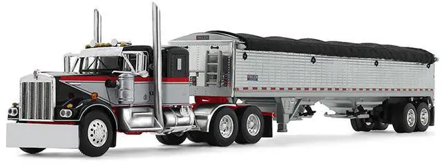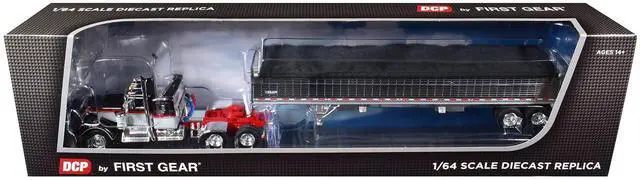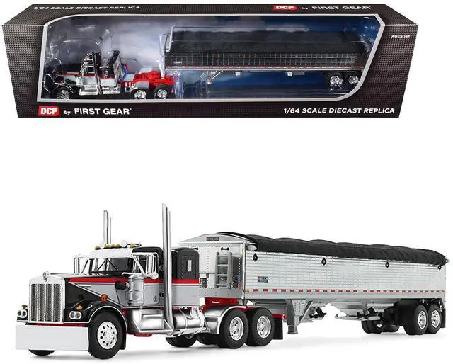 Kenworth W900A with 36" Sleeper and 43' Wilson Pacesetter Grain Trailer Black & Gray w/Red 1/64 Diecast Model by DCP/First Gear