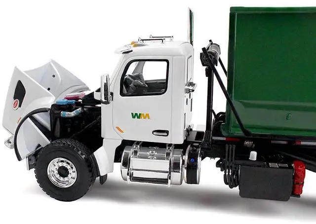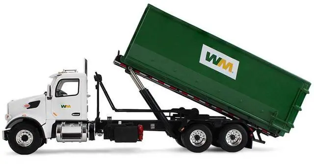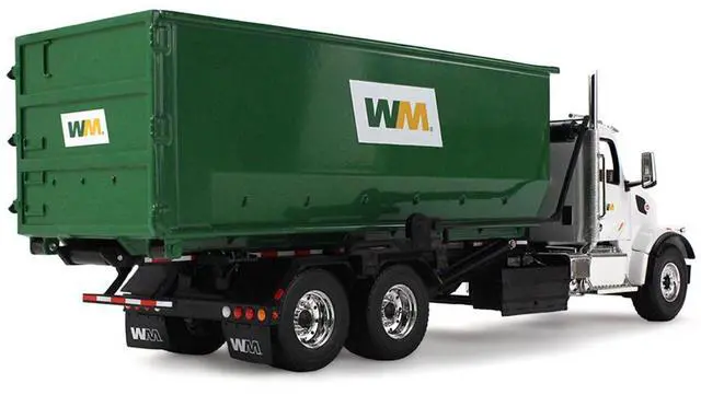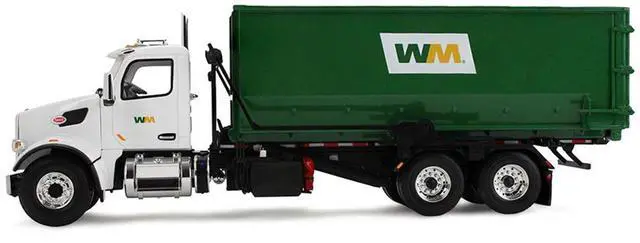 Brand new 1/34 scale diecast model of Peterbilt 567 Refuse Garbage Truck with 40 Yard Roll-Off Container "Waste Management" White and Green die cast model by First Gear.
