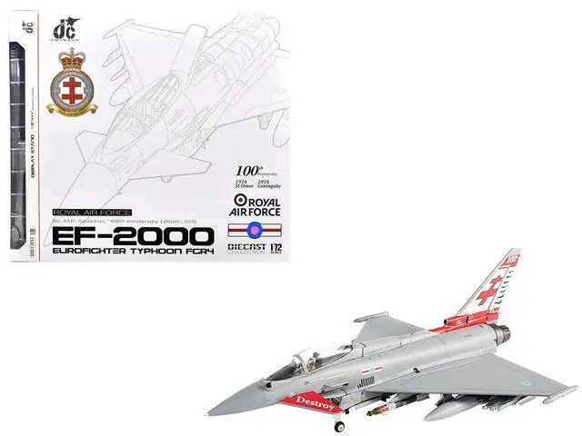 Brand new 1/72 scale diecast model of Eurofighter Typhoon FGR4 EF-2000 Aircraft "No. 41 (R) Squadron, 100th Anniversary" (2016) British Royal Air Force die cast model by JC Wings.