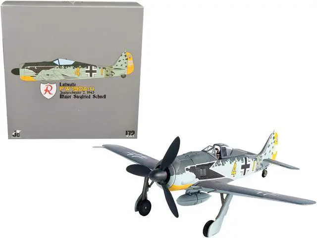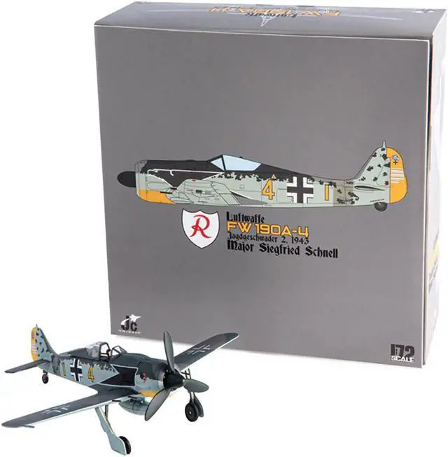 Brand new 1/72 scale diecast model of Focke-Wulf FW 190A-4 Fighter Aircraft "Major Siegfried Schnell, Luftwaffe, JG2, France" (1943) die cast model by JC Wings.