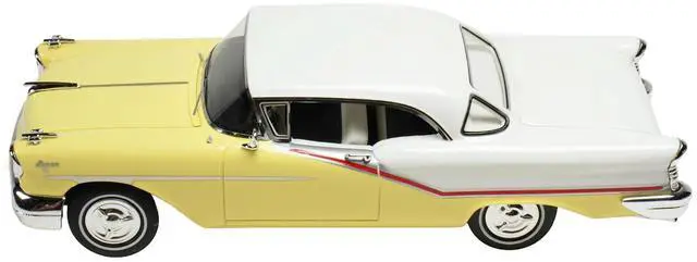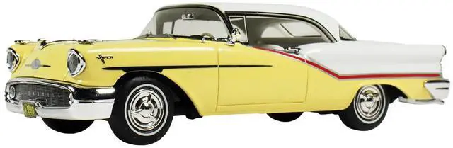 Brand new 1/43 scale car model of 1957 Oldsmobile Starfire Coronado Yellow and Alcan White Limited Edition to 200 pieces Worldwide model car by Goldvarg Collection.