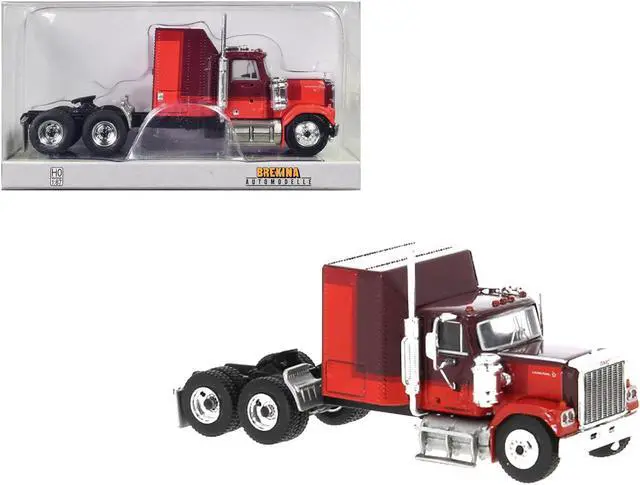 Brand new 1/87 (HO) scale plastic car model of 1980 GMC General Truck Tractor Dark Red and Light Red plastic model car by Brekina.