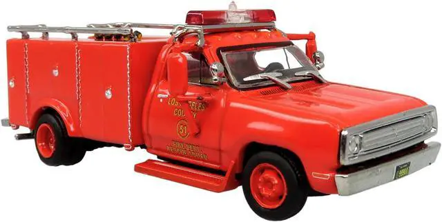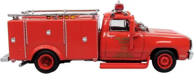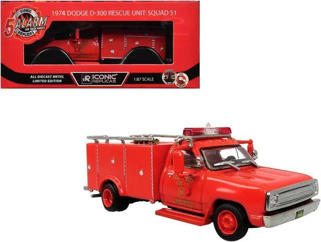Brand new 1/87 (HO) scale diecast model of 1974 Dodge D-300 Rescue Unit "Los Angeles County Fire Department Squad 51" Red "5 Alarm" Series Limited Edition die cast model by Iconic Replicas.