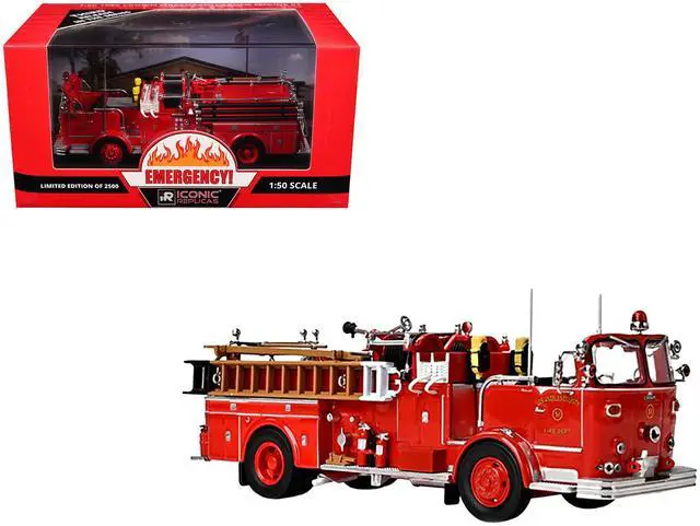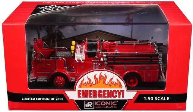 Brand new 1/50 scale diecast model of 1965 Crown Firecoach Fire Engine "Los Angeles County Fire Department" LA County FD (LACFD) "Emergency! " Series Limited Edition to 2500 pieces Worldwide die cast model by Iconic Replicas.