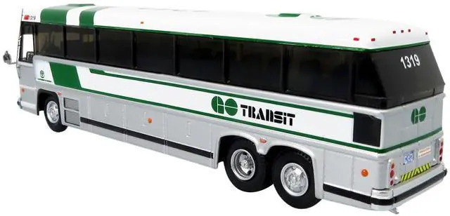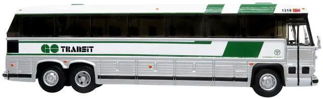 Brand new 1/87 (HO) scale diecast model of 1980 MCI MC-9 Crusader II Intercity Coach Bus "Union Station" Toronto (Ontario, Canada) "GO Transit" "Vintage Bus & Motorcoach Collection" die cast model by Iconic Replicas.