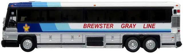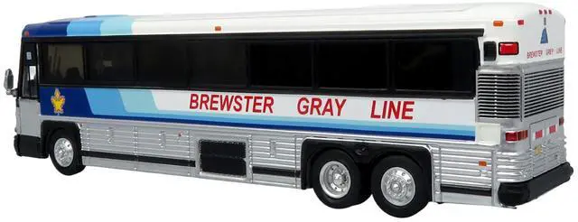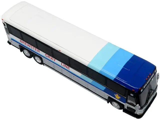Brand new 1/87 (HO) scale diecast model of 2001 MCI D4000 Coach Bus "Brewster Gray Line" White with Blue Stripes "Vintage Bus & Motorcoach Collection" Limited Edition to 504 pieces Worldwide die cast model by Iconic Replicas.