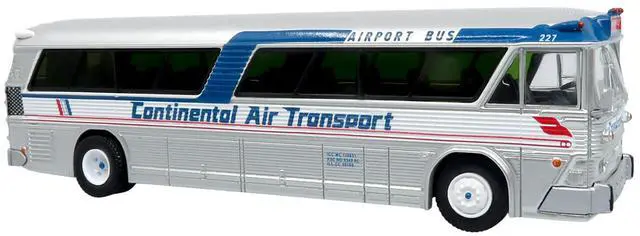 Brand new 1/87 (HO) scale diecast model of 1964 MCI MC-5A Coach Bus "Continental Air Transport" Silver with Blue Stripes "Vintage Bus & Motorcoach Collection" Limited Edition to 504 pieces Worldwide die cast model by Iconic Replicas.