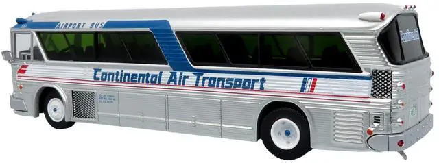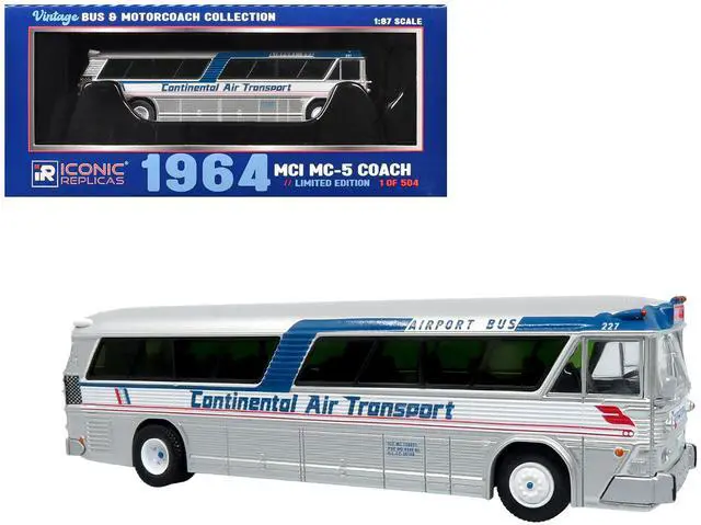 Brand new 1/87 (HO) scale diecast model of 1964 MCI MC-5A Coach Bus "Continental Air Transport" Silver with Blue Stripes "Vintage Bus & Motorcoach Collection" Limited Edition to 504 pieces Worldwide die cast model by Iconic Replicas.