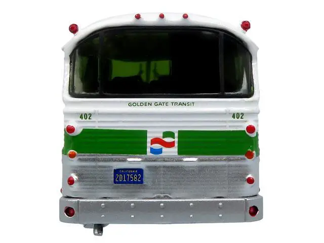 Brand new 1/87 (HO) scale diecast model of 1964 MCI MC-5A Coach Bus "Golden Gate Transit" White with Green Stripes "Vintage Bus & Motorcoach Collection" Limited Edition to 504 pieces Worldwide die cast model by Iconic Replicas.