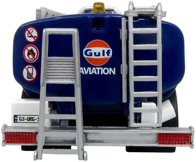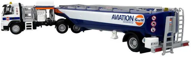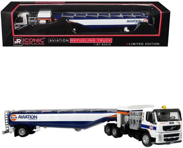 Brand new 1/87 (HO) scale diecast model of Volvo FM500 with Esterer Aviation Refueling Tanker Truck "Gulf Aviation" White with Blue Stripes Limited Edition die cast model by Iconic Replicas.