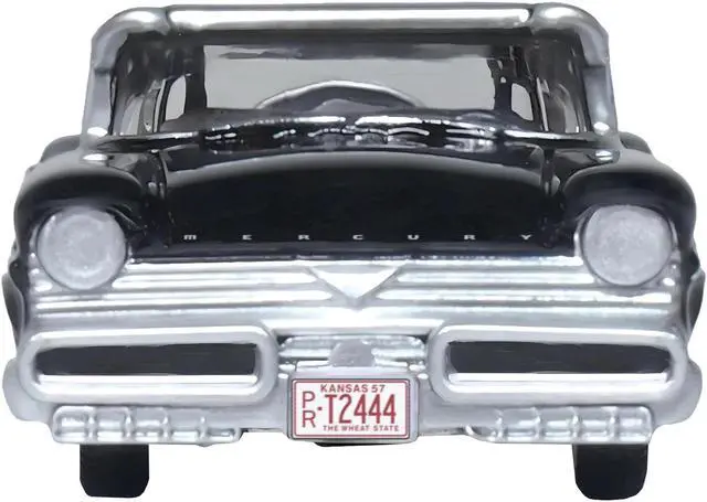 Brand new 1/87 (HO) scale diecast car model of 1957 Mercury Montclair Tuxedo Black die cast model car by Oxford Diecast.