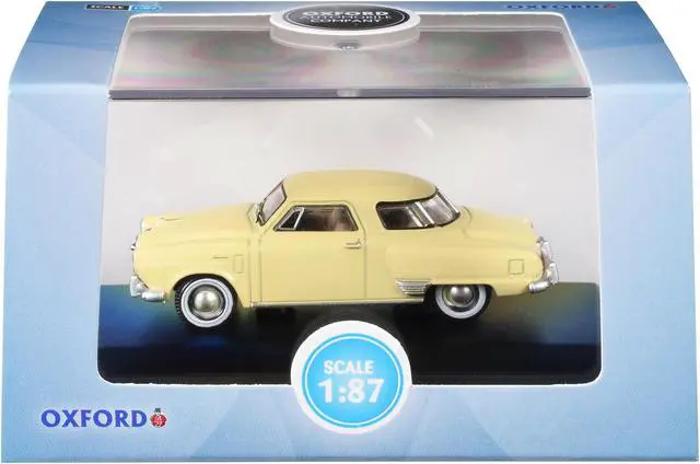 Brand new 1/87 (HO) scale diecast car model of 1950 Studebaker Champion Starlight Coupe Tulip Cream die cast model car by Oxford Diecast.