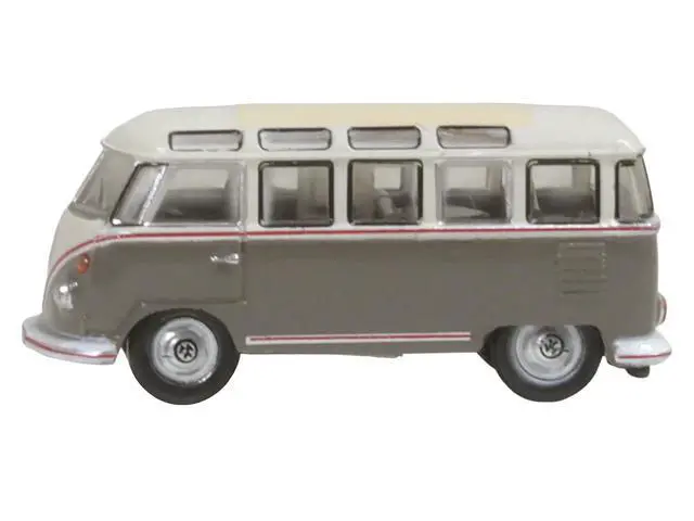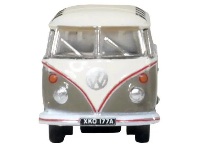 Brand new 1/148 (N) scale diecast car model of Volkswagen T1 Samba Bus Mouse Grey and Pearl White with Red Stripes die cast model car by Oxford Diecast.