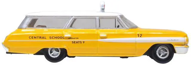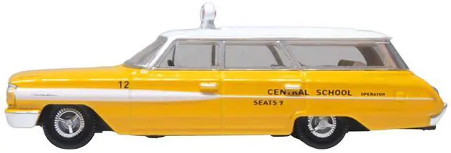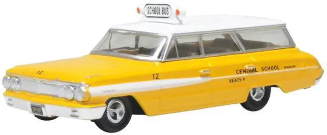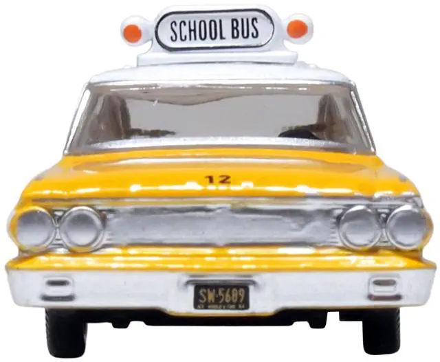 Brand new 1/87 (HO) scale diecast car model of 1964 Ford Country Station Wagon "Central School Bus" Yellow with White Top die cast model car by Oxford Diecast.