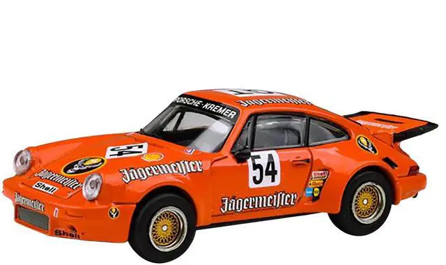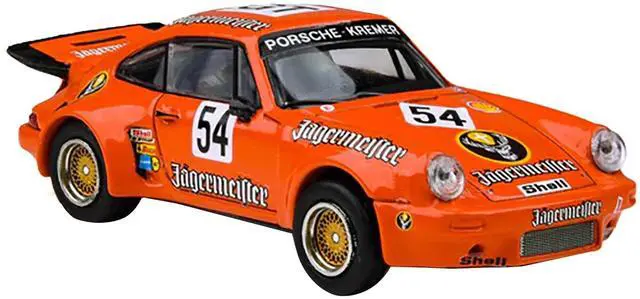 Brand new 1/64 scale diecast car model of Porsche 911 Carrera RSR 3.0 #54 "Jaegermeister - Kremer" Orange die cast model car by Paragon.