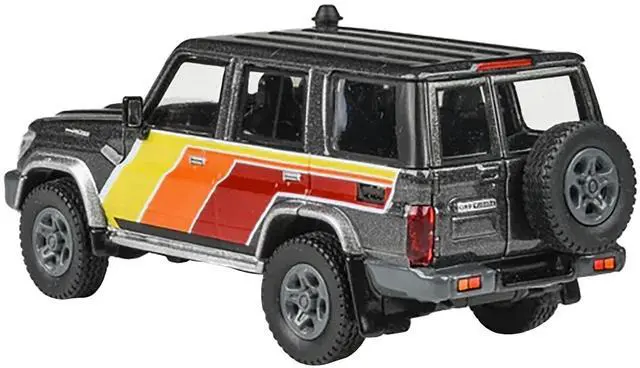 Brand new 1/64 scale diecast car model of 2014 Toyota Land Cruiser LC76 "TRD Livery" Gray Metallic with Stripes die cast model car by Paragon.