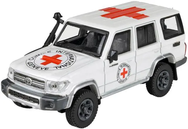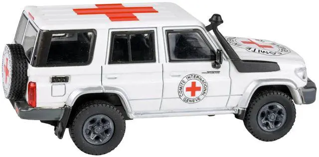 Brand new 1/64 scale diecast car model of 2014 Toyota Land Cruiser 76 White "International Red Cross" die cast model car by Paragon.