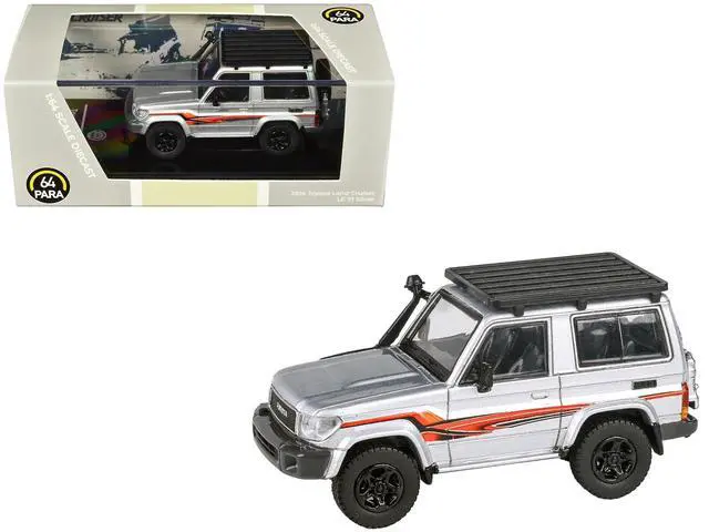 Brand new 1/64 scale diecast car model of 2014 Toyota Land Cruiser LC 71 Silver Metallic with Graphics die cast model car by Paragon.