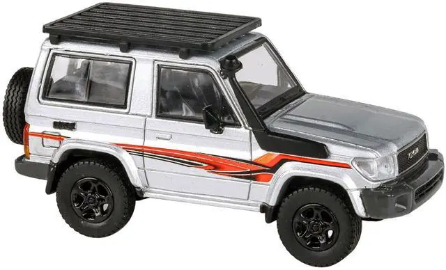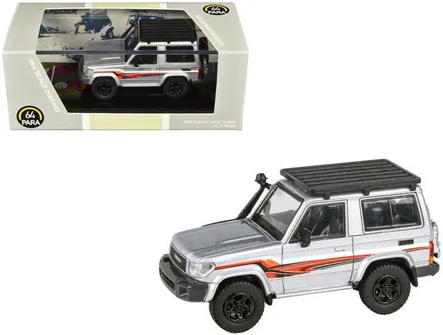 Brand new 1/64 scale diecast car model of 2014 Toyota Land Cruiser LC 71 Silver Metallic with Graphics die cast model car by Paragon.