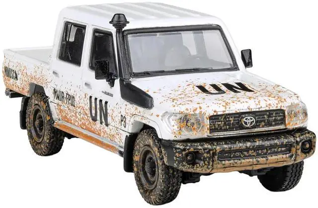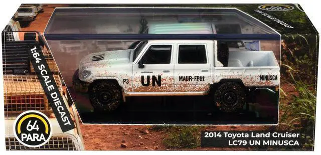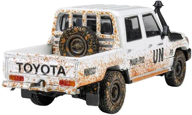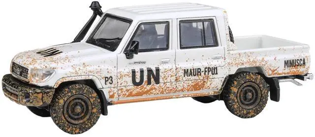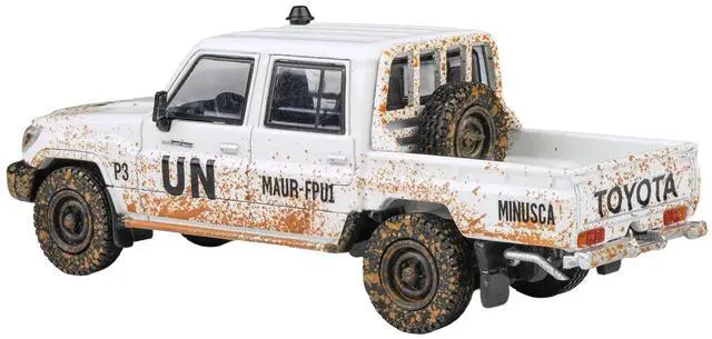 Brand new 1/64 scale diecast car model of 2014 Toyota Land Cruiser LC 79 Pickup Truck "UN MINUSCA" White (Dirty Version) die cast model car by Paragon.