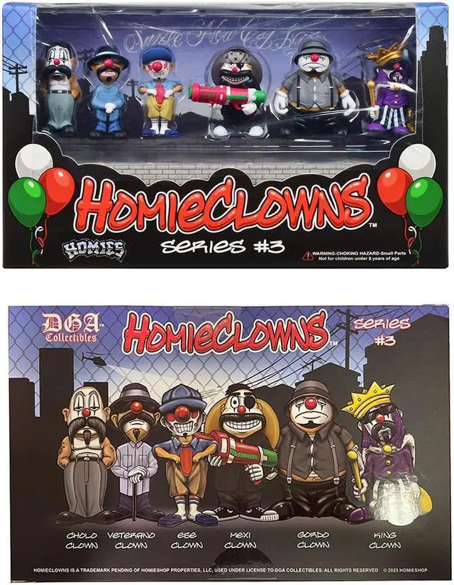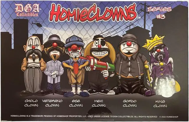 Includes figures for: Cholo Clown, Veterano Clown, Ese Clown, Mexi Clown, Gordo Clown and King Clown.