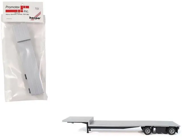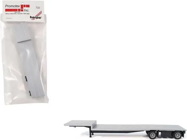 Brand new 1/87 (HO) scale plastic model of 2-Axle Dropdeck Flatbed Trailer Silver Top plastic model by Promotex.