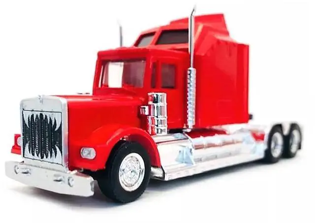 Brand new 1/87 (HO) scale plastic car model of Kenworth W900 with Extra Large Sleeper Red plastic model car by Promotex.