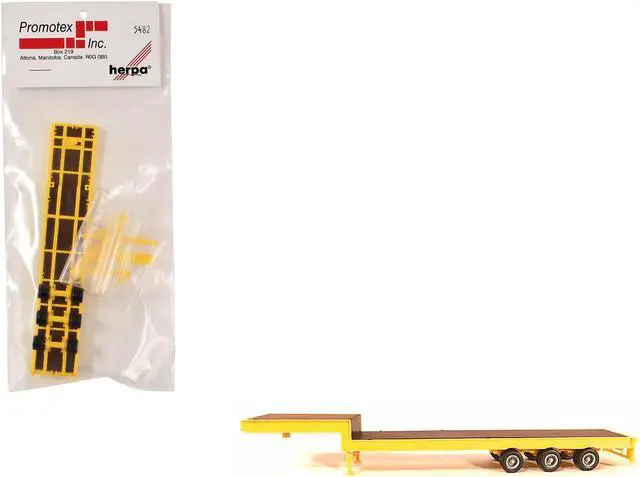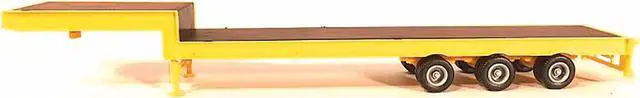 Brand new 1/87 (HO) scale plastic model of 3-Axle Step Deck Equipment Trailer with Ramps Yellow plastic model by Promotex.