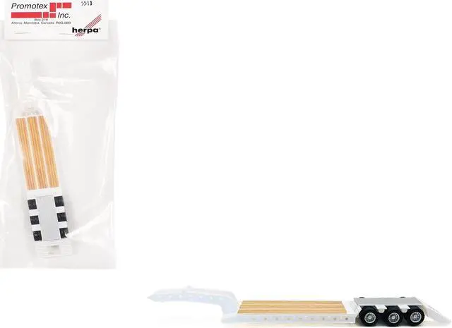 Brand new 1/87 (HO) scale plastic model of 3-Axle Heavy Equipment Lowboy Trailer White plastic model by Promotex.