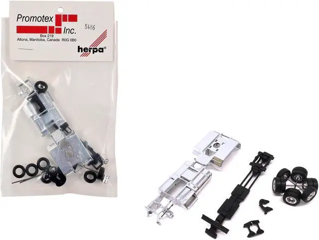 Brand new 1/87 (HO) scale plastic model of Chrome Chassis Kit for Kenworth or Peterbilt Cab plastic model by Promotex.