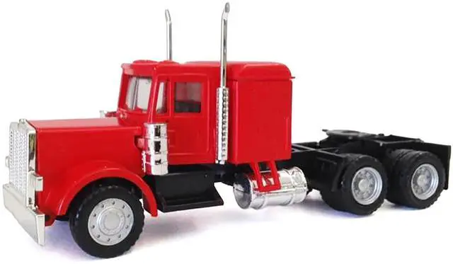 Brand new 1/87 (HO) scale plastic car model of Peterbilt Long Tractor Red plastic model car by Promotex.