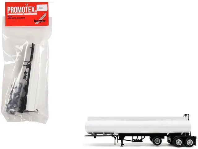 Brand new 1/87 (HO) scale plastic model of Tag-Axle Elliptical Tanker Trailer White plastic model by Promotex.
