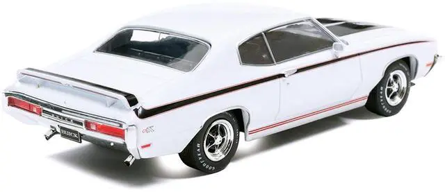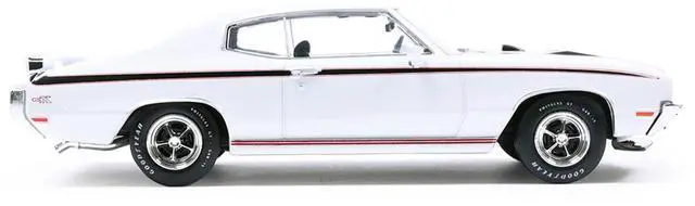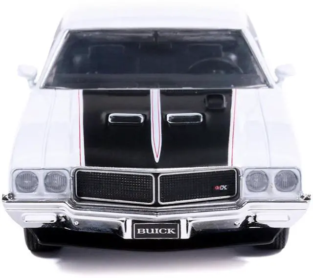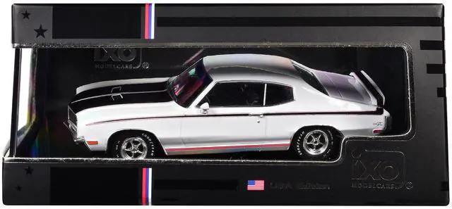 Brand new 1/43 scale diecast model of 1970 Buick GSX Apollo White with Black and Red Stripes die cast model by IXO Models.