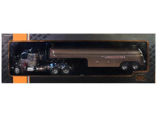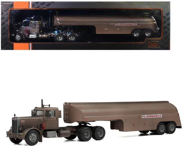 Brand new 1/43 scale diecast model of 1955 Peterbilt 281 Truck with Tank Trailer Brown (Weathered) die cast model by IXO Models.