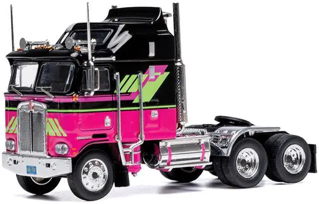 Brand new 1/64 scale diecast model of 1976 Kenworth K100 Aerodyne Truck Tractor Black and Pink with Graphics die cast model by IXO Models.