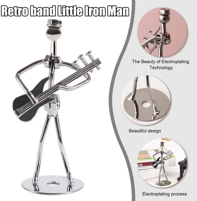 Small Iron Sculpture, Metal Musician Player, Art Figurine Decorations, Musical Man Statue Gift, Display for Home Office Desk (Electric Guitar)