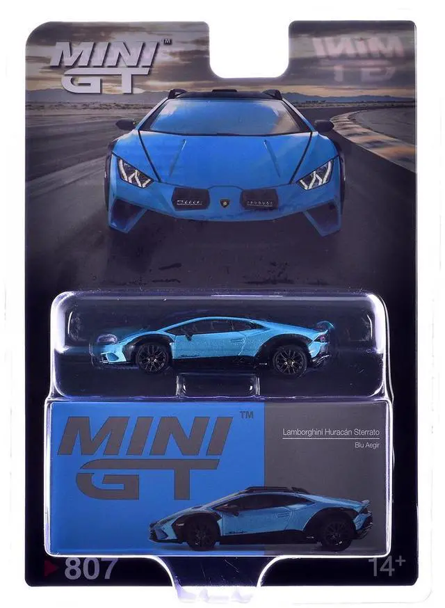 Brand new 1/64 scale diecast car model of Lamborghini Huracan Sterrato Blu Aegir Blue Metallic with Black Top Limited Edition die cast model car by Mini GT.
