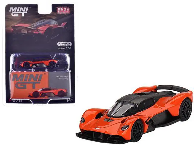 Brand new 1/64 scale diecast car model of Aston Martin Valkyrie Maximum Orange with Carbon Top Limited Edition to 2640 pieces Worldwide die cast model car by Mini GT.