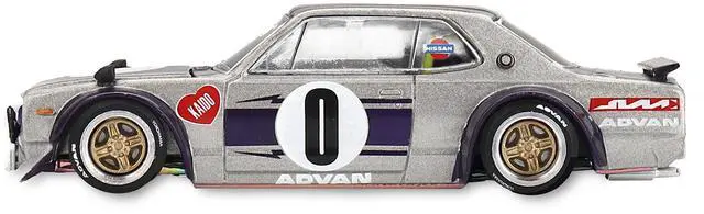 Brand new 1/64 scale diecast car model of Nissan Skyline 2000GT-R (KPGC10) "Kaido Works V1" RHD (Right Hand Drive) #0 Silver Metallic with Purple Stripes (Designed by Jun Imai) "Kaido House" Special die cast model car by Mini GT.