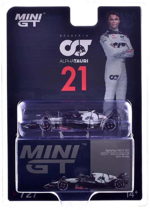 Brand new 1/64 scale diecast car model of AlphaTauri AT04 #21 Nyck de Vries Formula One F1 "Australian GP" (2023) Limited Edition die cast model car by Mini GT.