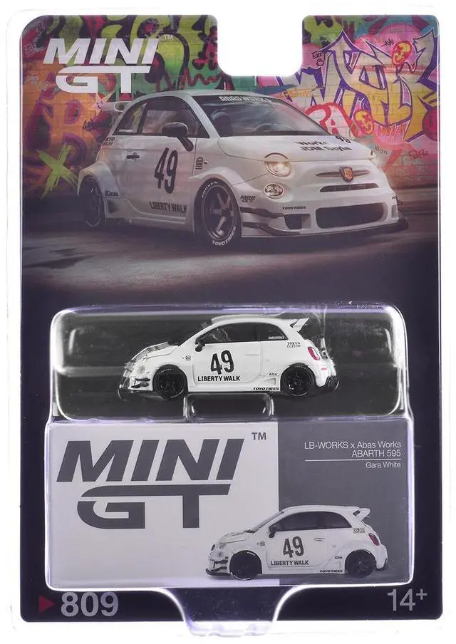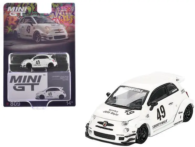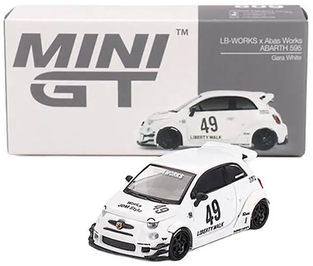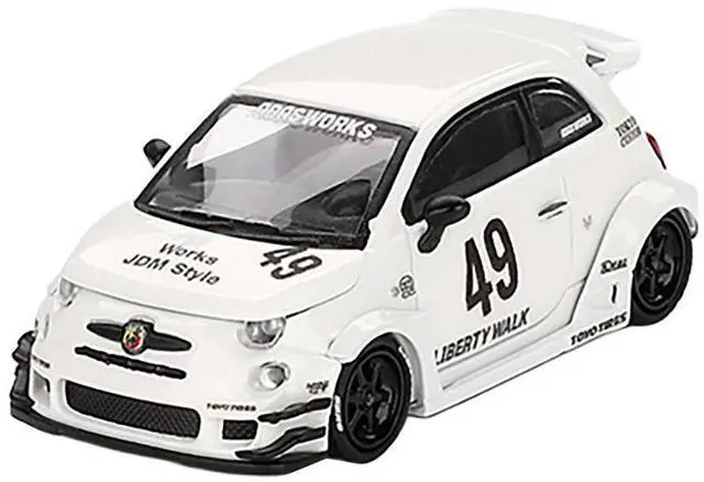 Brand new 1/64 scale diecast car model of ABARTH 595 #49 "LB-Works x Abas Works" Gara White Limited Edition die cast model car by Mini GT.