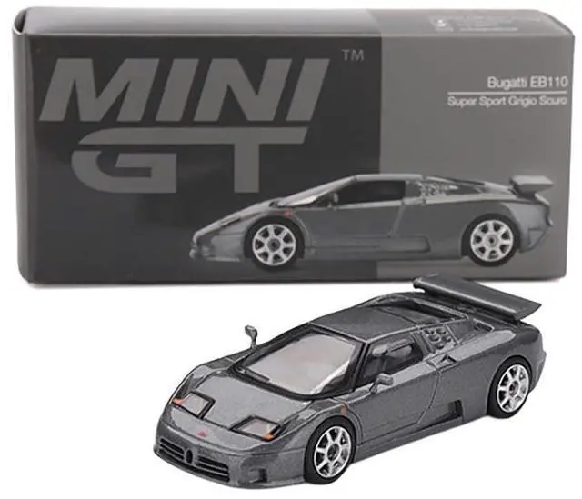 Brand new 1/64 scale diecast car model of Bugatti EB110 Super Sport Grigio Scuro Dark Gray Metallic Limited Edition die cast model car by Mini GT.